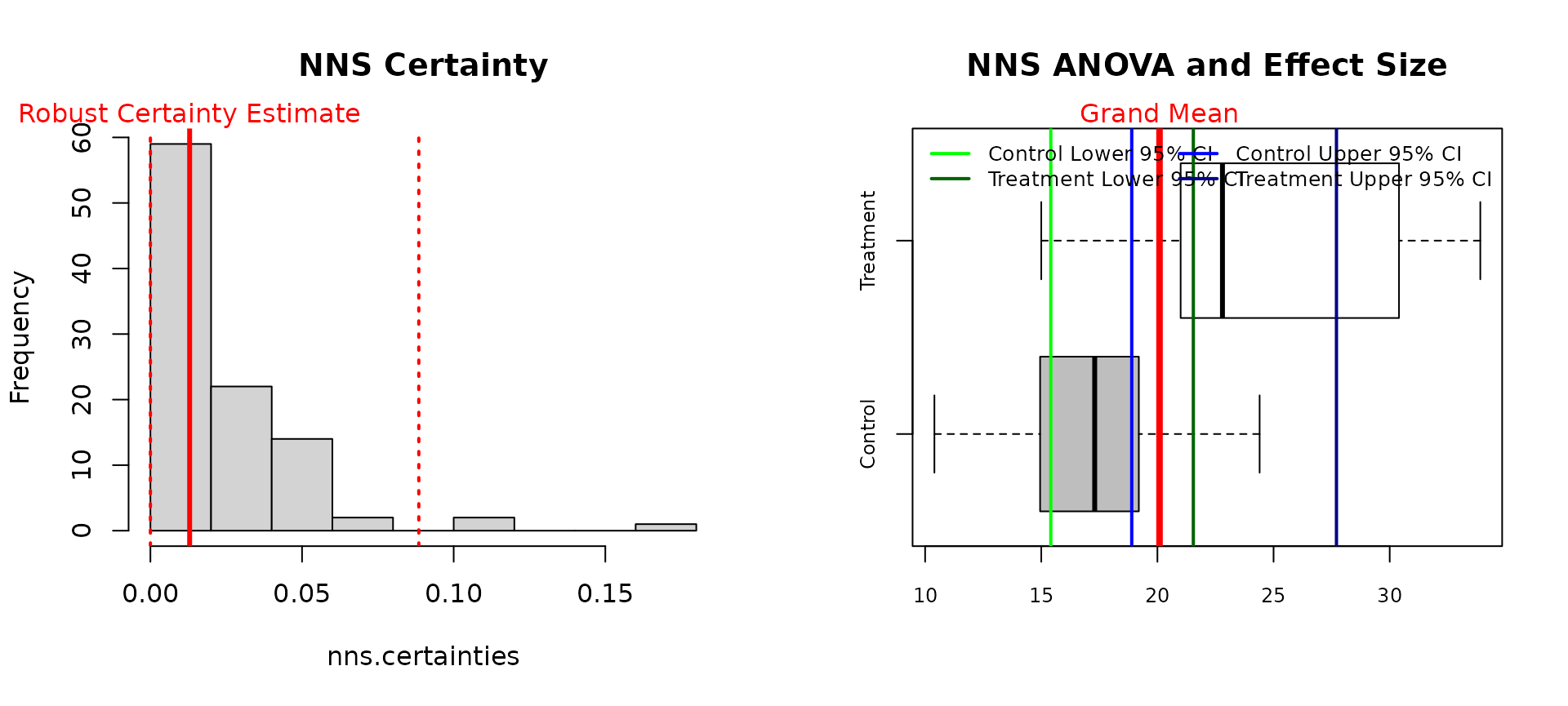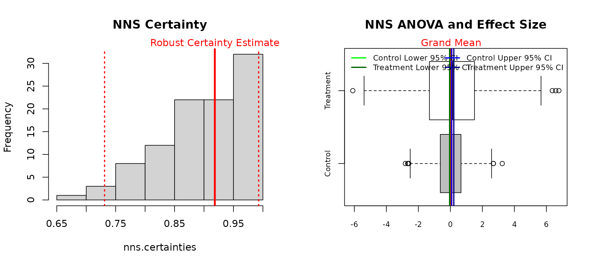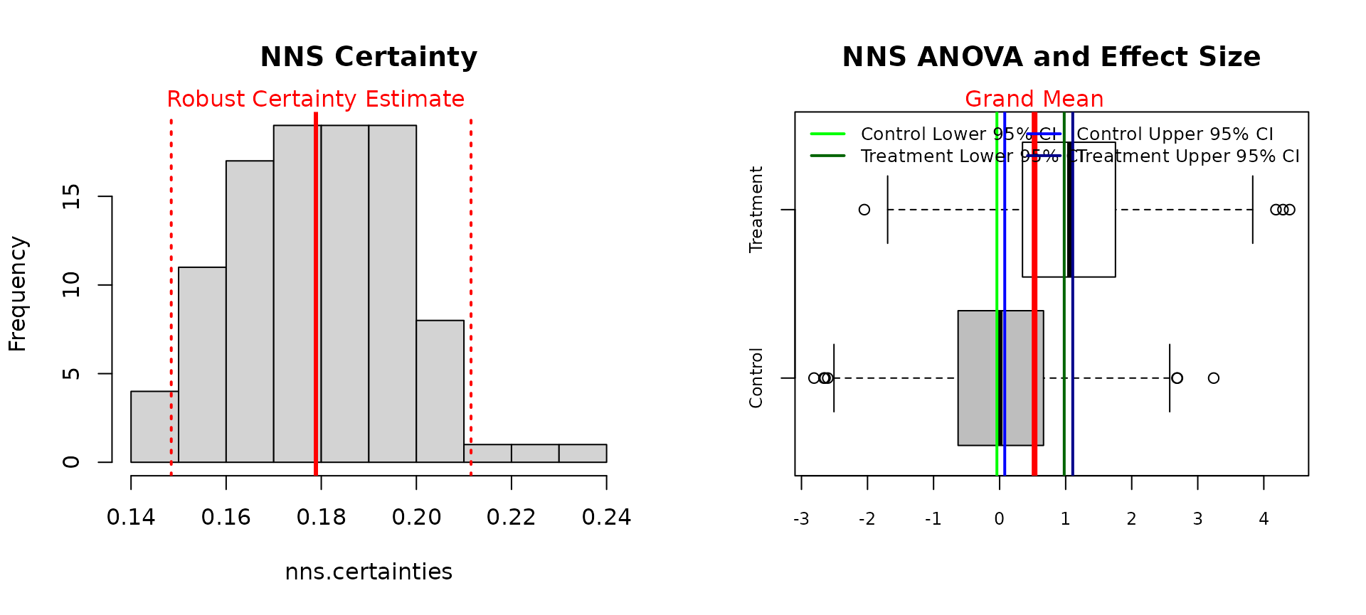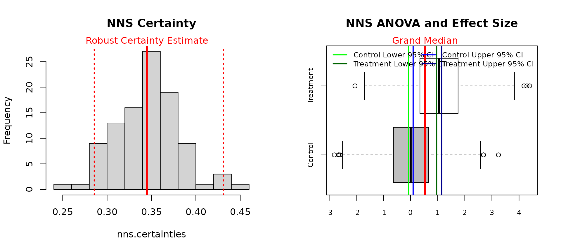 NNS.ANOVA(control = mpg_man_trans, treatment = mpg_auto_trans, robust = TRUE)